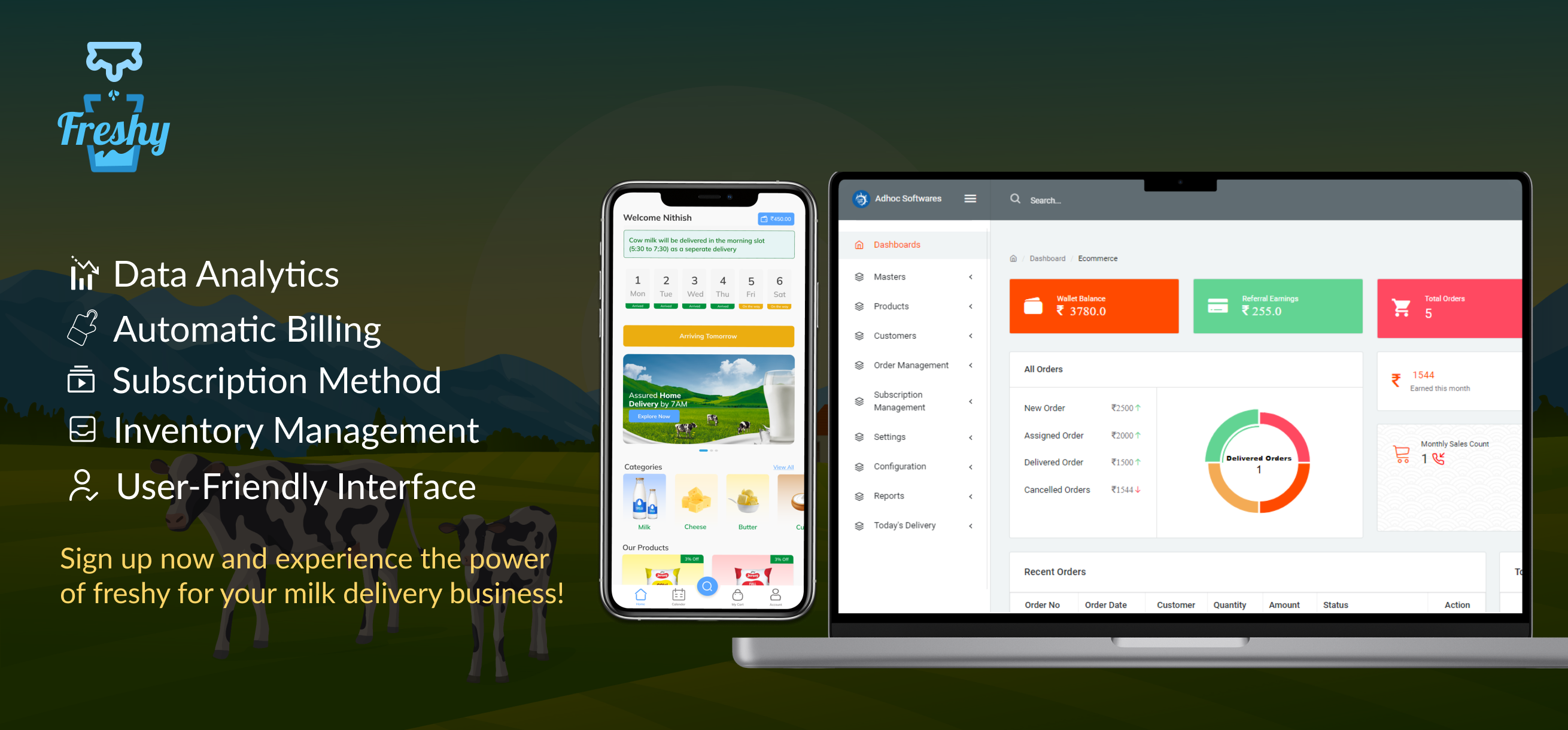 Hey there, milk delivery entrepreneurs! We’ve got something special for you – Freshy, the game-changing solution that’s about to transform your milk delivery business. Developed by Adhoc Softwares, Freshy Delivery App simplifies your operations and provides unmatched convenience for both you and your customers. Say goodbye to hassles and get ready for the future of milk delivery!