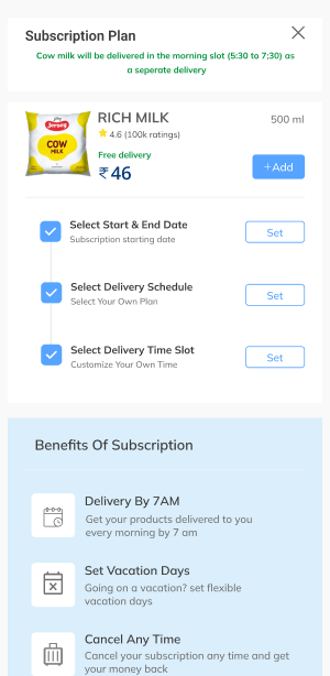 Subscription Method: Freshy offers a revolutionary subscription method that makes ordering hassle-free for your customers. They can choose from different subscription types – daily, weekdays, weekends, or fully customized options. With Freshy, they can enjoy daily milk deliveries without any hassle.